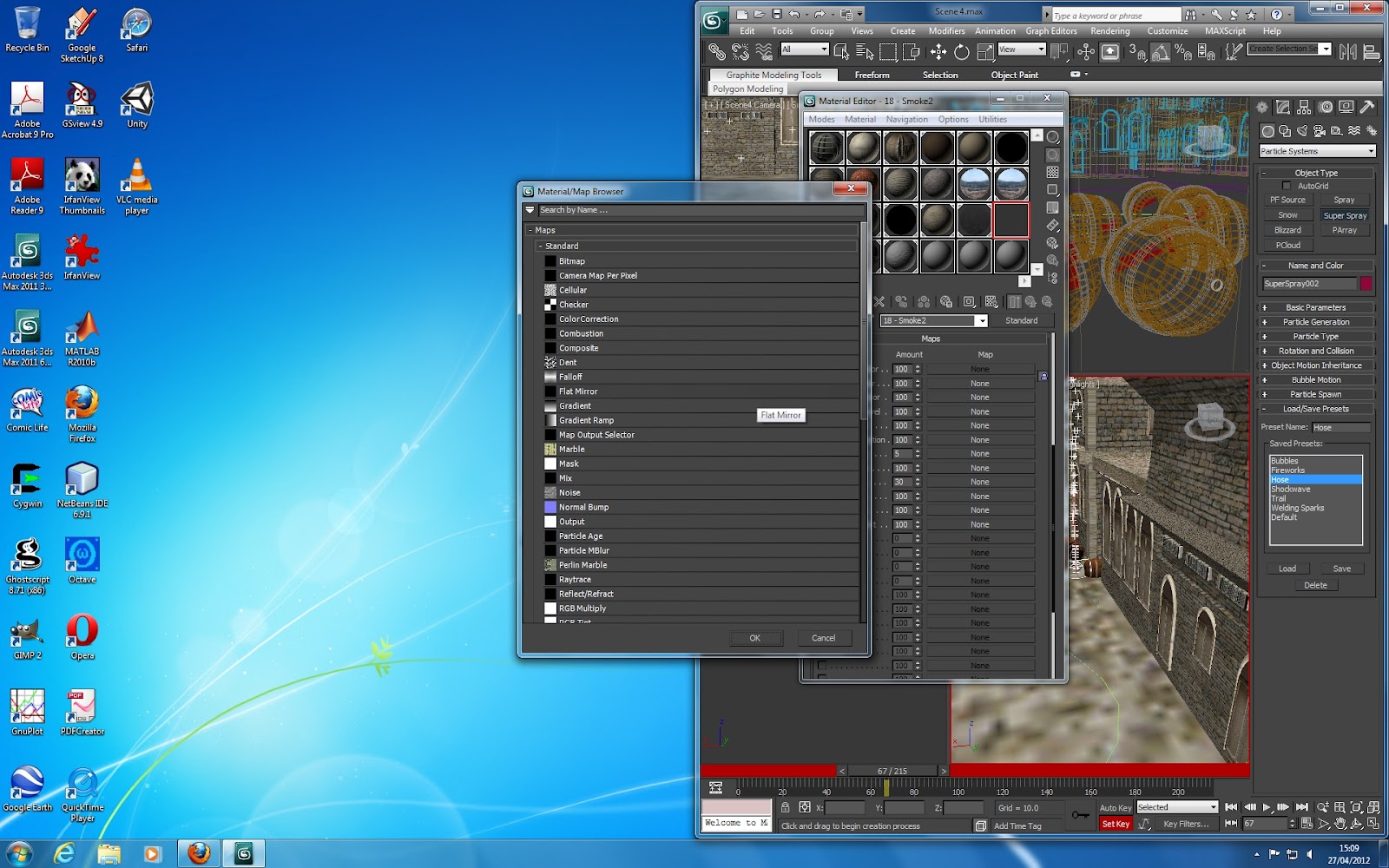 Now that my scenery has progressed and I have begun to merge all of my models together and increase the detail of them, my home laptop has decided that it can no longer cope. While doing some work, the program decided to crash (2011 32-bit version) due to the amount of polys etc. that are now being used. So now I am slightly more limited in where I can do my work, and even some of the computers in the labs are going slower than usual. Because of this, I am saving at least a week at the end of the semester for rendering my final animation, and am going to ensure that I get the majority of the modelling and animating done by the end of the easter break, then do all of the blogging after. This way, hopefully any further problems that I encounter, due to the program not being able to cope/crashing and losing some of my work, will be rectified. I will also ensure from now on to back up every single time that something gets changed, and to keep multiple back-ups of my work incase one of them becomes corrupted.